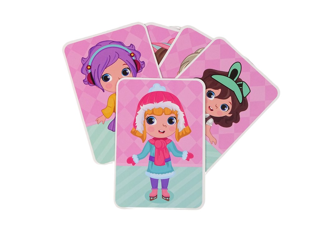 - Sada obsahuje karty s postavami v různých oblečeních, úkolem dítěte je sestavit magnetické prvky podle vzoru tak, aby zcela kopíroval daný obrázek