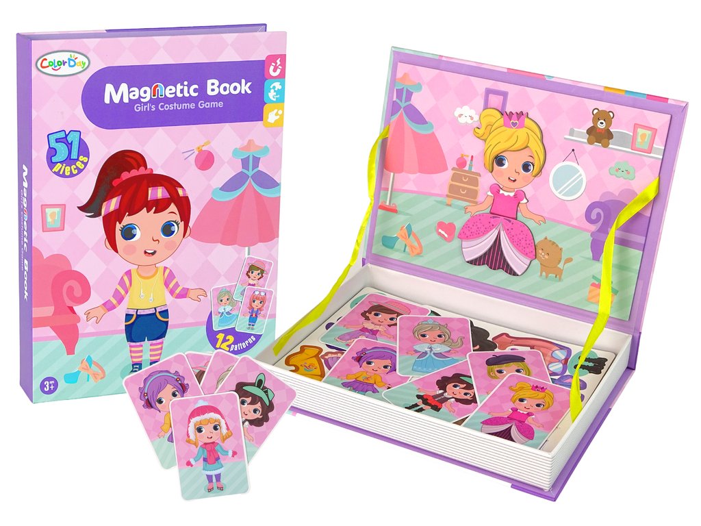 - Magnetická skládačka Kniha převleky Kostýmy Hra rozvíjí kognitivní funkce a učí děti kreativnímu myšlení, soustředění a samostatnosti
