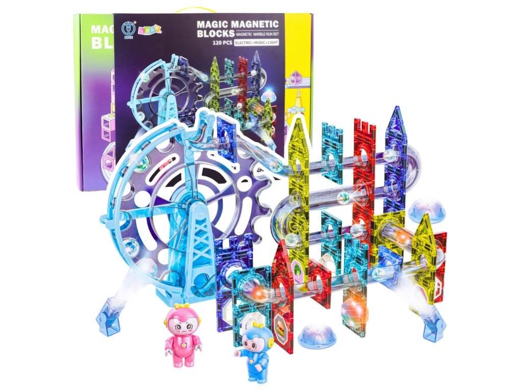 Představujeme vám Magnetickou stavebnici s dráhou pro kuličky, která promění vaše dítě na malého architekta. Tento komplexní set obsahuje až 120 světlých a pestrých komponentů, které lze spojit magnetickou technologií pro snadnou a kreativní hru. Vaše dítě si může užívat tvorbu různých scénářů od zábavných skluzavek a tunelů po složité prostorové konstrukce s pohyblivými částmi, jako je ruchový diabolský mlýn.