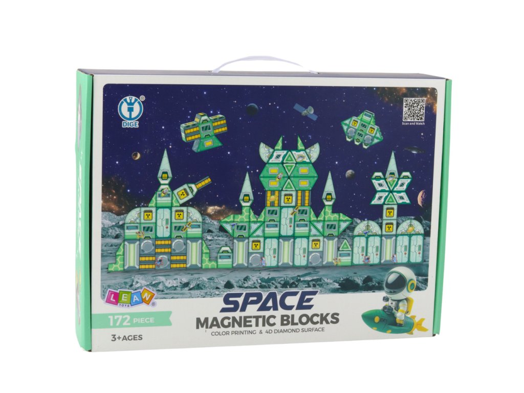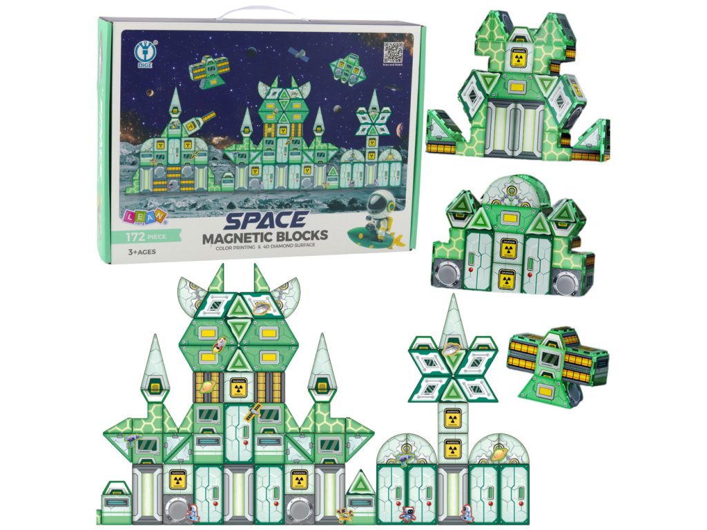 Sada se skládá z 172 prvků různých tvarů – zahrnuje trojúhelníky, čtverce, kosočtverce, 3D panely a dekorativní destičky s grafikou. Kostky jsou lehké, odolné a snadno se spojují díky silným magnetům umístěným uvnitř každého prvku. Stavění prostorových struktur, věží, kosmických stanic nebo vozidel rozvíjí logické myšlení, manuální dovednosti a kreativitu.