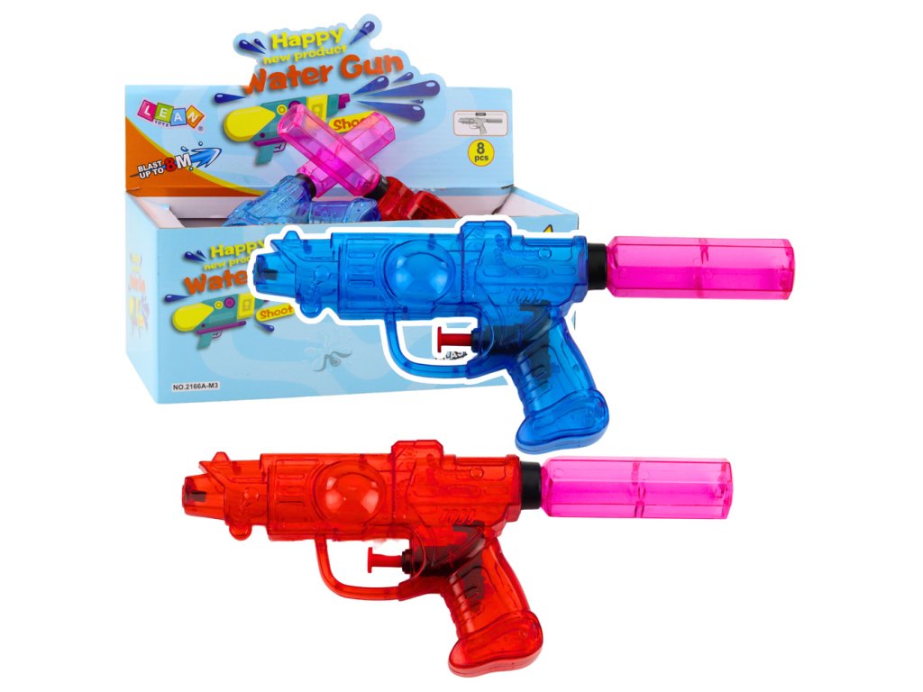 Malá Průhledná Vodní Pistole Dosah 8m Červená Modrá Mix