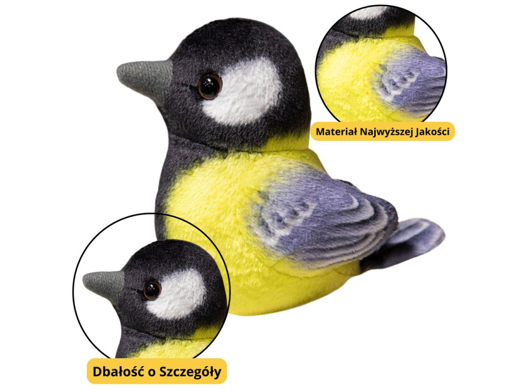 Malý Plyšový Modrý Pták Sýkorka Čížek 10cm je malá, roztomilá plyšová hračka inspirovaná vzhledem známých zahradních ptáků Tyto mini maskoty zahrnují: