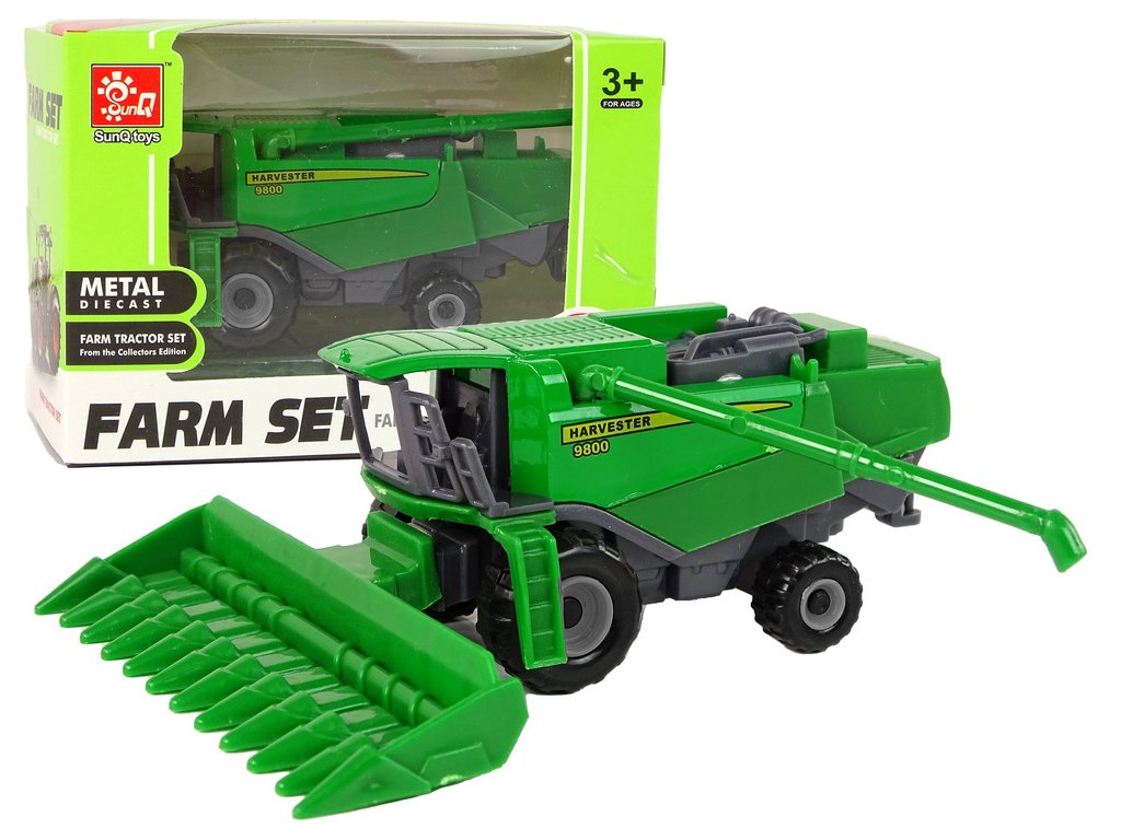 Zelený malý zemědělský kombajn Malý zelený plastový kombajn je vysoce kvalitní hračka Potěší děti svým realistickým vzhledem a propracovanými detaily
