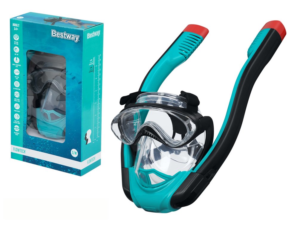 - Potápěčská maska Celotvářová maska pro šnorchlování S/M Bestway 24060 Inovativní konstrukce masky a trubice nové generace umožňuje přirozené dýchání nosem a ústy ve vodě