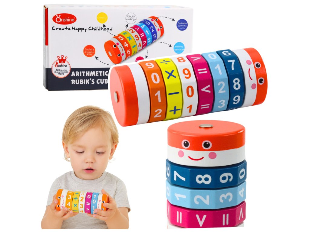 Objevte kouzlo edukativního matematického válce pro děti! Tento pestrobarevný nástroj činí učení zábavou a jednoduché matematické operace hrou. Díky otáčivým kroužkům s čísly a symboly může Vaše dítě skládat rovnice a řešit úkoly samostatně. Intenzivní barvy nejen přitahují pozornost, ale podněcují i kreativitu a schopnost koncentrace.