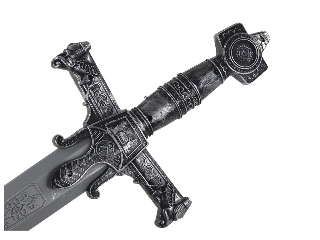 Meč bojovníka s ozdobnou rukojetí a zvuky 80 cm x 18 cm x 3 cm Plastový meč, který vás přenese do světa dávných válečníků – rytířů, gladiátorů, Římanů nebo Vikingů!