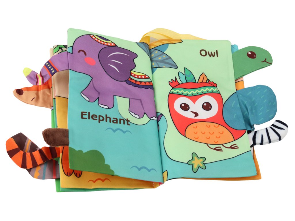 Měkká Vzdělávací Šustící Kniha Zvířata Džungle je nejen hračka, ale také interaktivní nástroj rozvoje pro nejmenší.