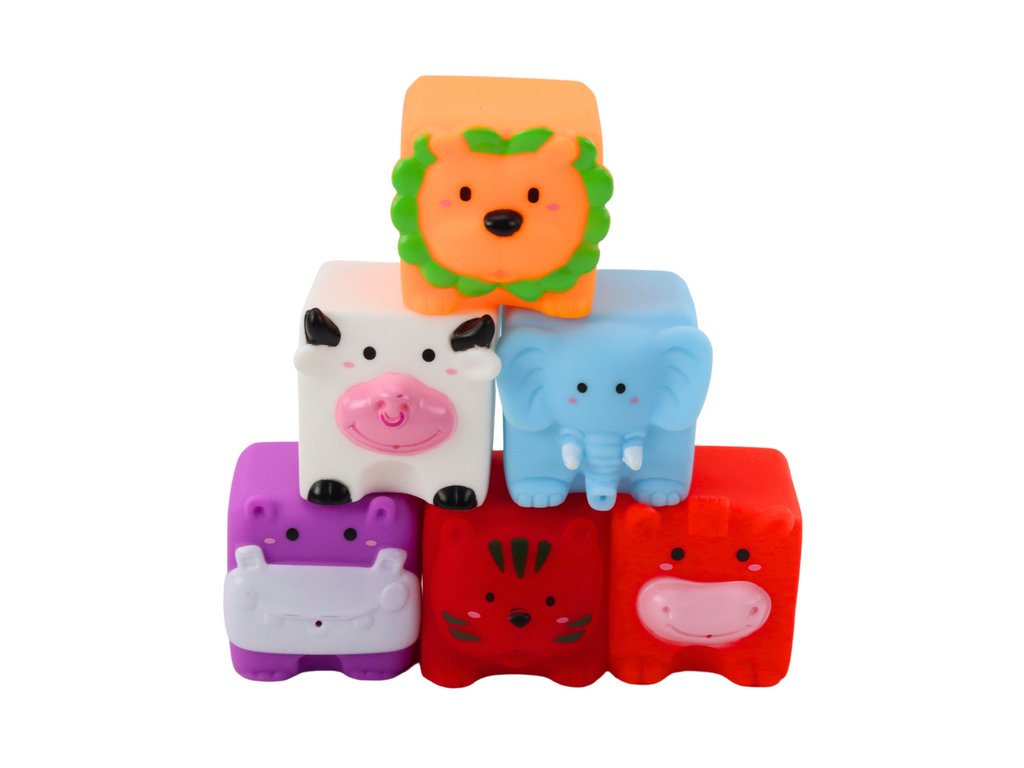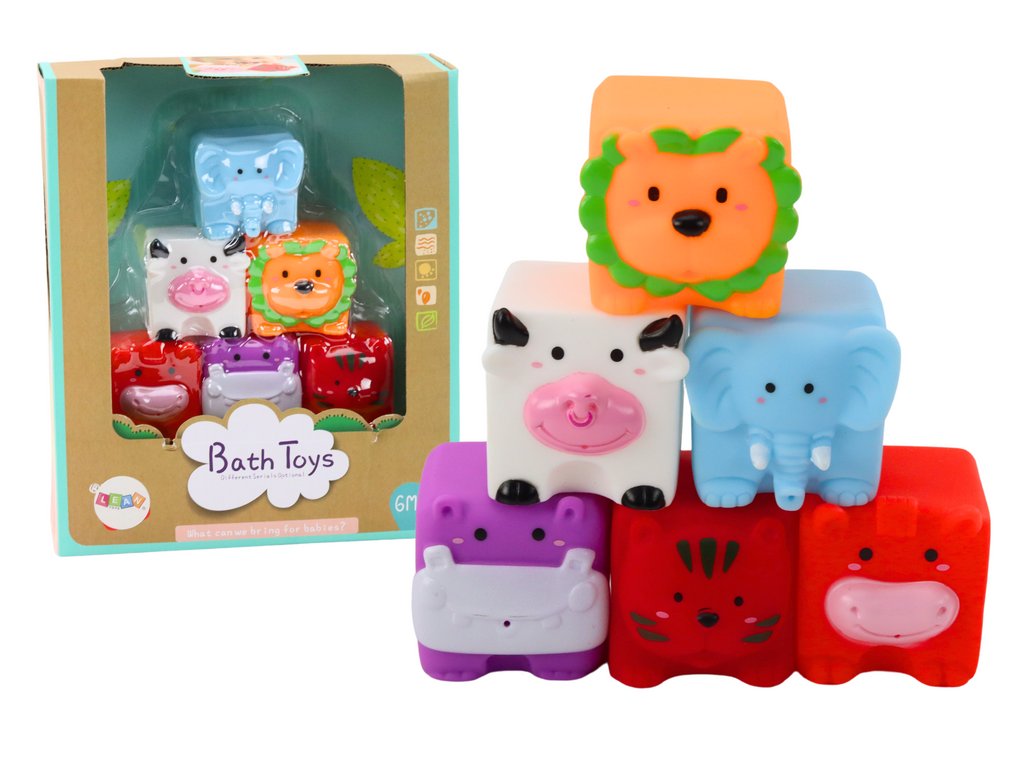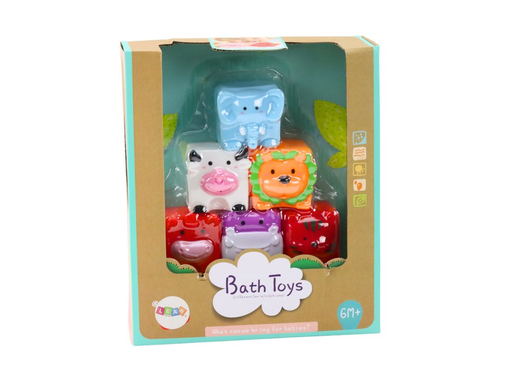 Měkké Kostičky Edukační Do Koupání Zvířata představují propracovanou sadu navrženou pro všestranný rozvoj dětí Sestava obsahuje 6 barevných gumových kostiček, které nejen přitahují pohled, ale také zapojují dětské smysly
