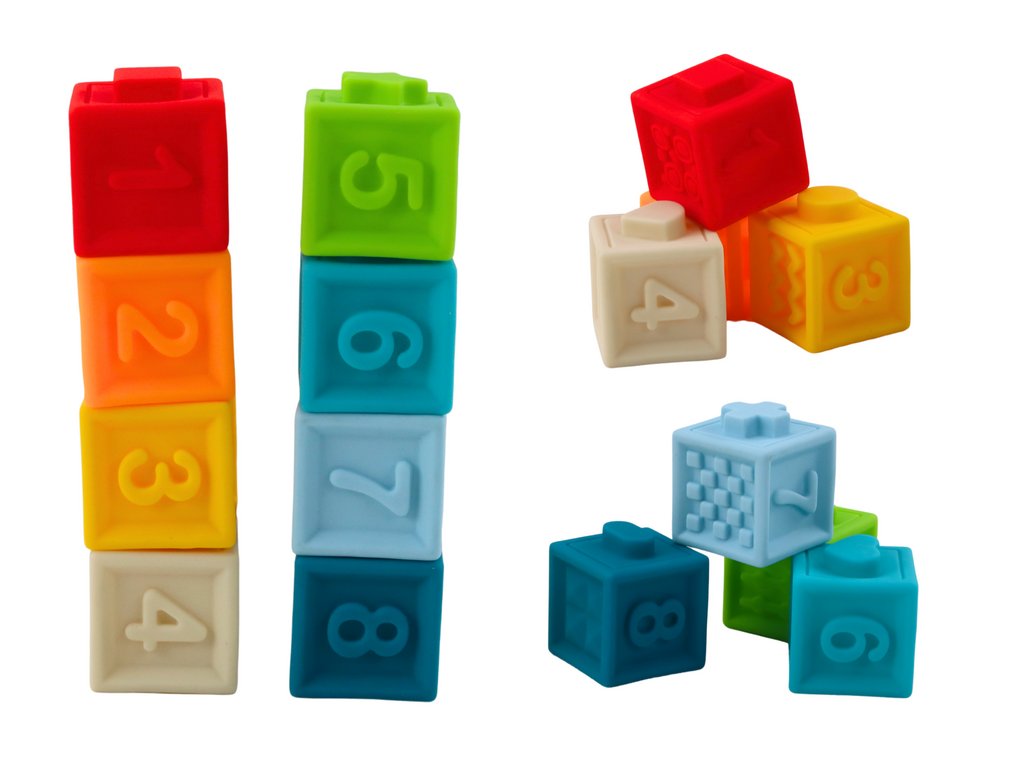 Sada obsahuje: 8 kostek, každá s unikátními vlastnostmi pro rozvoj kognitivních schopností dětí