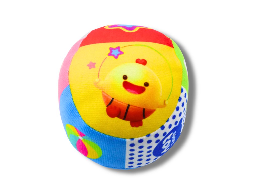 Měkký barevný míček s chrastítkem je ideální hračka pro nejmenší, která spojuje prvky zábavy a rozvoje Vyroben z příjemného materiálu na dotek, je zcela bezpečný pro malé děti a láká je k uchopování, kutálení a házení