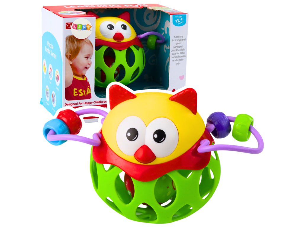 Uvnitř sovy se nachází malá kulička s chrastítkem, která při pohybu vydává příjemné zvuky, stimuluje sluch a přitahuje pozornost dítěte Koule je navržena pro rozvoj koordinace pohybového a vizuálního vnímání a manuálních dovedností