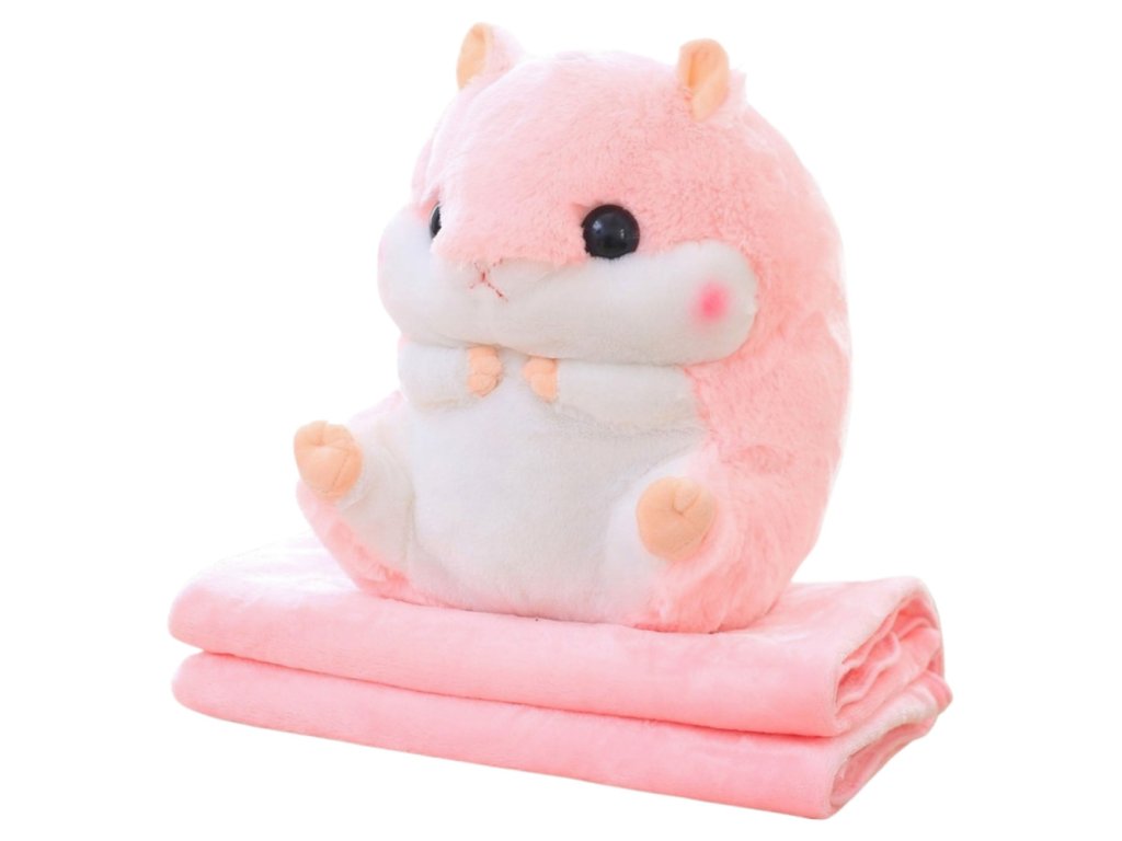 Měkoučký Plyšový Chomík 3v1: Hřejivý Maskot, Polštář a Přikrývka 190x100 cm, Růžový