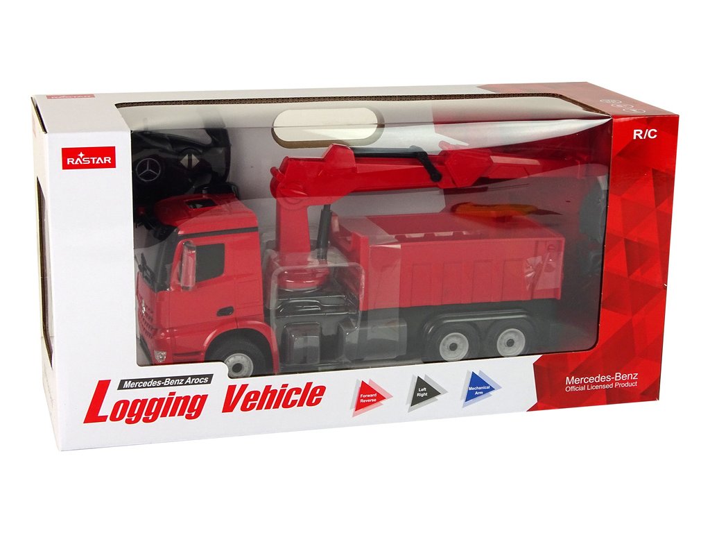 Náklaďák s drapákem Mercedes Rastar červený Jedná se o impozantní hračku, která dětem přinese spoustu radosti a možností kreativní zábavy Její červená barva a realistický vzhled okamžitě upoutají pozornost a nadchnou malé milovníky vozidel