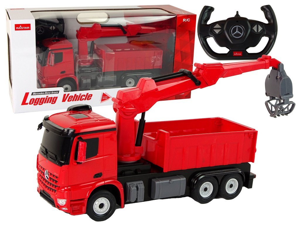 - Náklaďák s drapákem Mercedes Rastar červený Jedná se o impozantní hračku, která dětem přinese spoustu radosti a možností kreativní zábavy