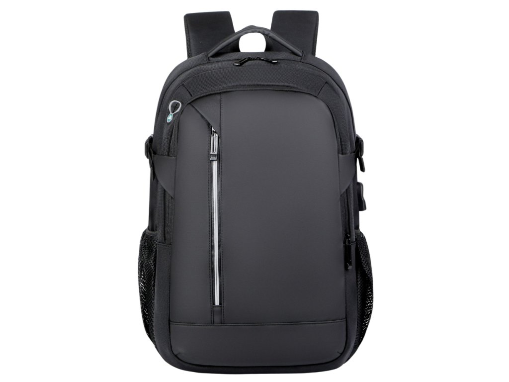Městský batoh s USB, kapsou na notebook a reflexními prvky Funkční a moderní městský batoh v černé barvě je skvělou volbou do práce, školy nebo na univerzitu