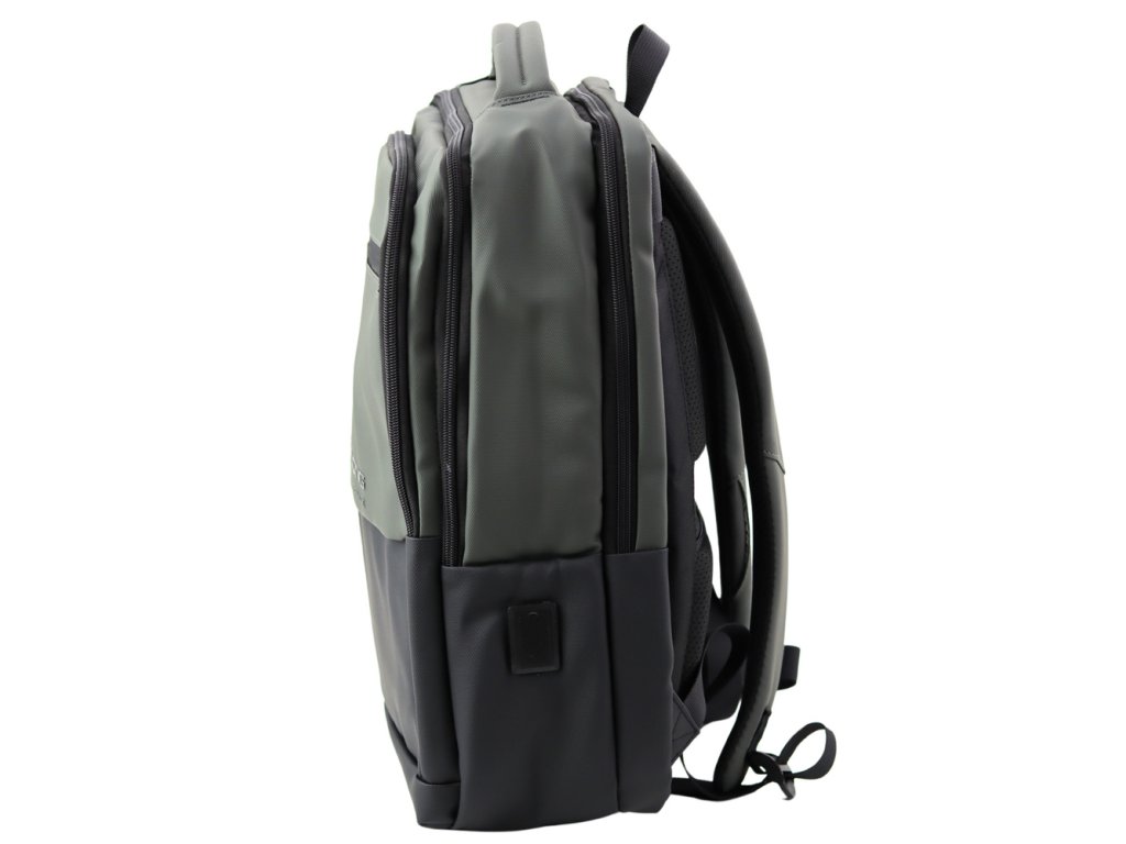 Městský biznis batoh s USB, černo-šedý Stylový městský batoh v odstínech grafitu a černé je ideální volbou pro ty, kteří hledají funkčnost, pohodlí a moderní design.