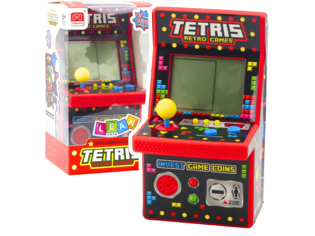 Mini Herní Automat Tetris Retro 49 Her 1676 Úrovní Červený
