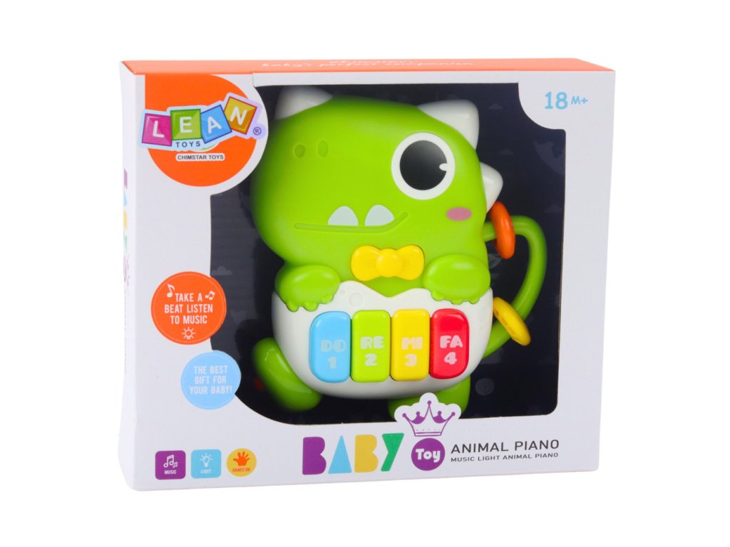 - MINI PIANINKO DINOSAUŘÍK ZELENÝ SE SVĚTELNÝMI A ZVUKOVÝMI EFEKTY Mini pianko ve tvaru sympatického zeleného dinosaurka je interaktivní vzdělávací hračka, která kombinuje hudební, smyslové a rozvojové funkce