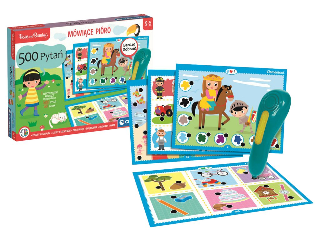 - Mluvící Pero 500 Otázek Clementoni 50782 je vzdělávací hra zaměřená na otázky a odpovědi, která je speciálně navržena pro děti předškolního věku
