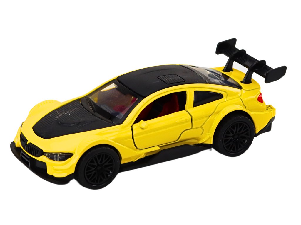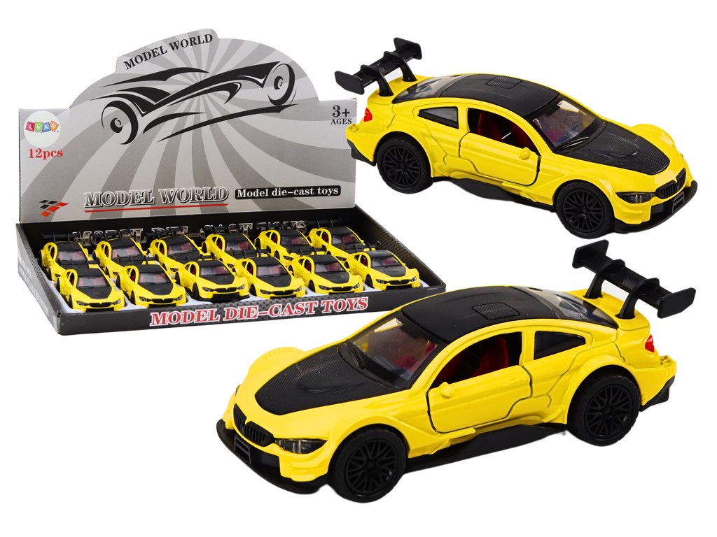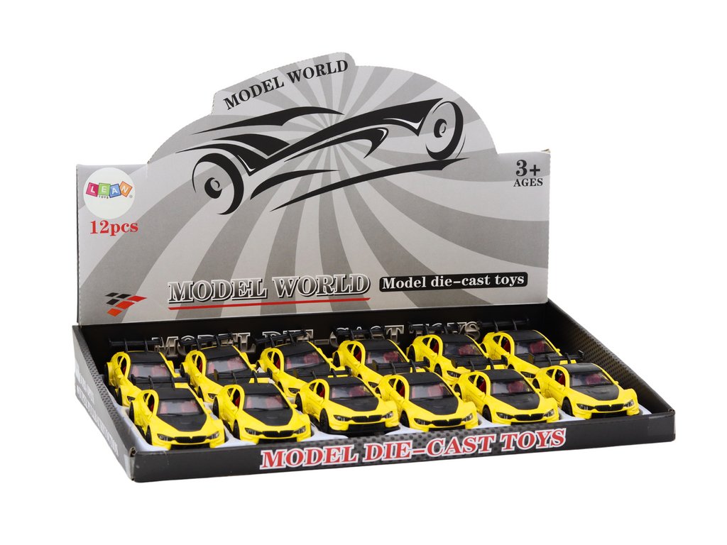 Model auta sportovní 1:32 s mechanickým pohonem, kovový, žlutý