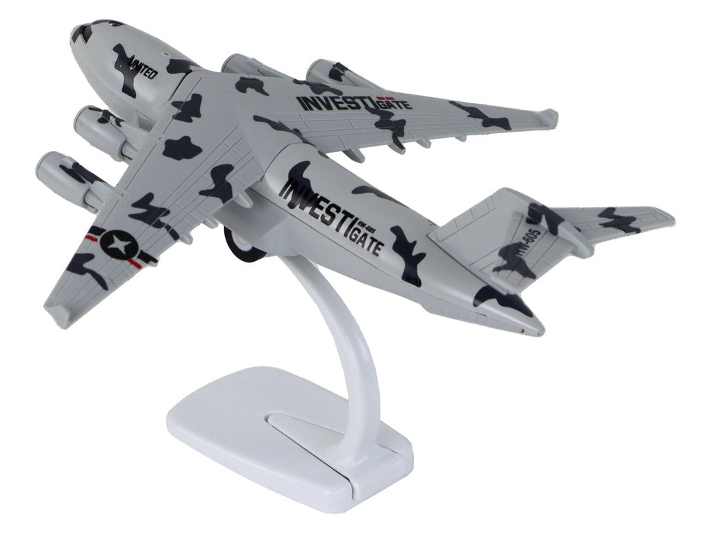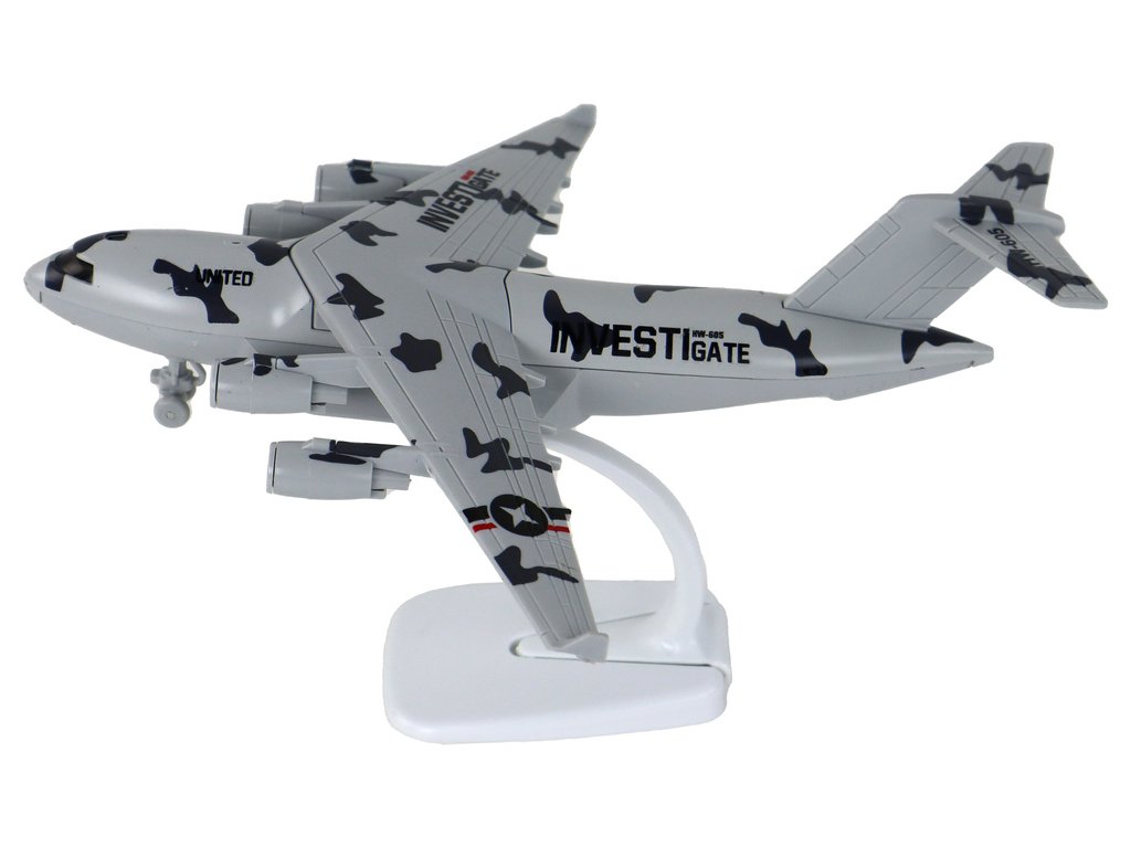 Letadlo Šedé vojenské Moro UNITED Figurka HW-605 Tento model vojenského letadla je impozantní svým vzhledem Je natřen charakteristickým moro vzorem, který mu dodává vojenský charakter a díky kterému vypadá velmi autenticky