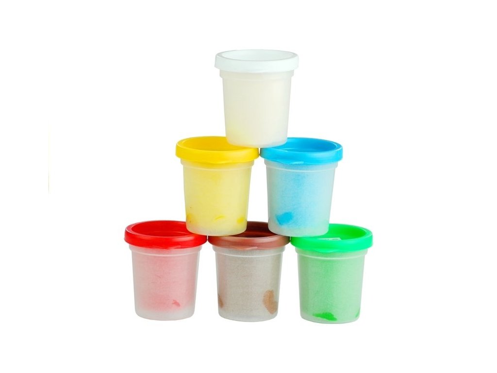 - 6 barevných kelímků plastelíny: snadno míchatelné pro vytváření nových odstínů