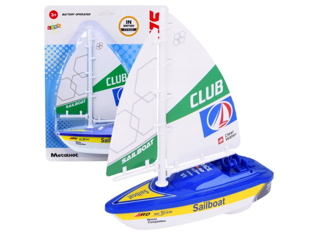 Modrá Bateriová Plachetnice s Turbínovým Pohonem je skvělou hračkou pro děti, které milují vodní dobrodružství a zábavu ve vaně, bazénu nebo jezírku.