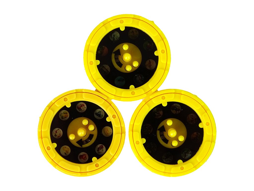 - V sadě najdete 3 kolečka s obrázky, z nichž každé obsahuje 8 různých motivů: hmyz, dinosaury a ovoce