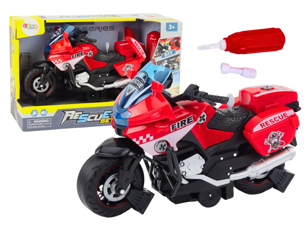 Montážní Záchranná Motorka DIY Světla Zvuky Červená