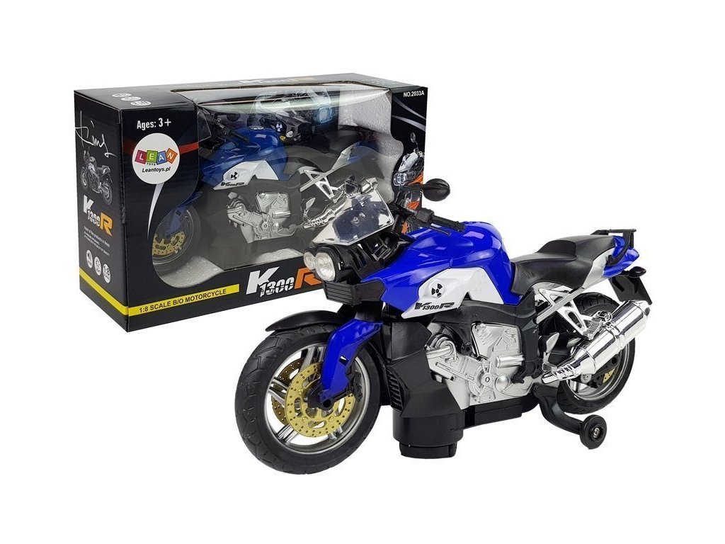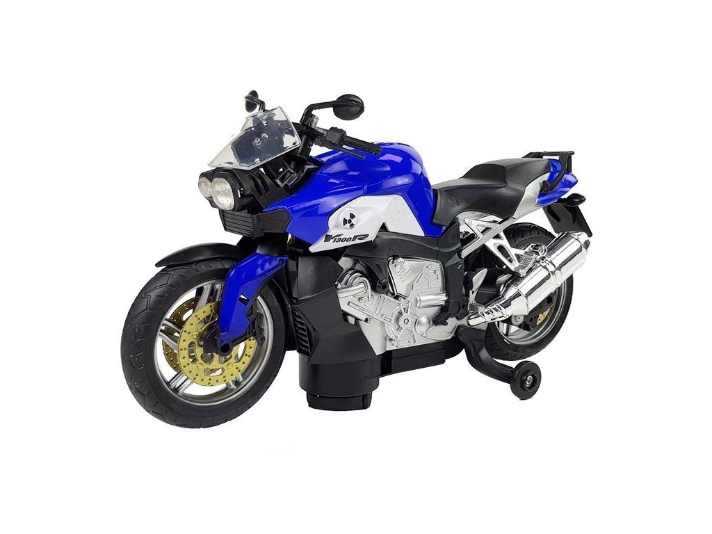 Probudí jeho vášeň Motocykl má aerodynamický tvar, po stranách jsou namontována malá kolečka, která zajišťují stabilitu a hračka se udržuje ve svislé poloze