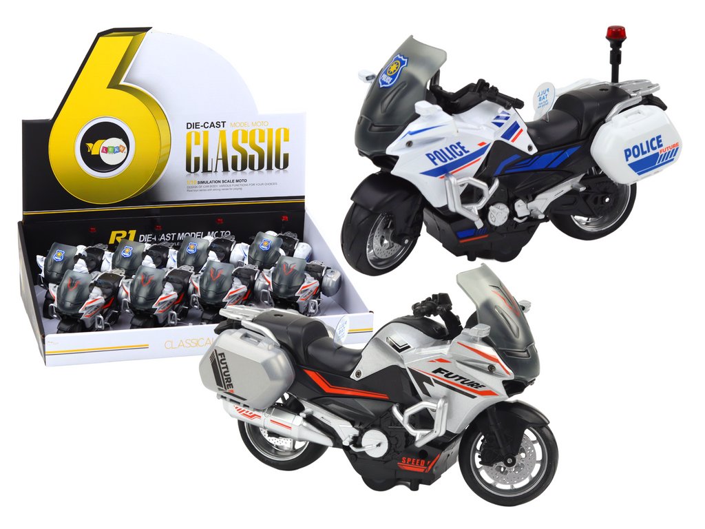- Motocykl s frikčním pohonem v měřítku 1:10 Policejní sportovní Motocykly s frikčním pohonem jsou dynamická a vzrušující hračka, která přenese děti do světa rychlé jízdy a dobrodružství na dvou kolech