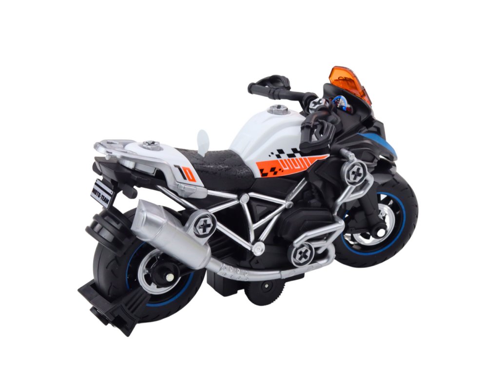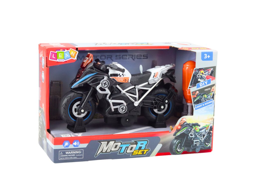 MOTORKA K SESTAVENÍ ČERNÁ ZÁVODNÍ S EFEKTY SVĚTEL A ZVUKŮ Motorka k sestavení v černé, závodní verzi je moderní konstrukční hračka, která spojuje dynamický, sportovní vzhled s edukační funkcí, a tak poskytuje dítěti nejen zábavu, ale i hodnotné učení skrze hru.