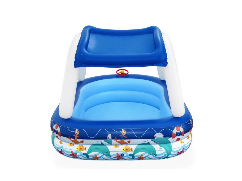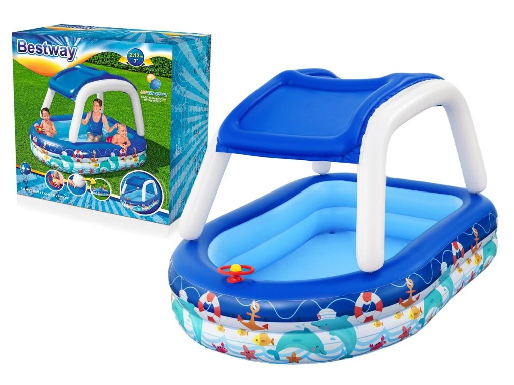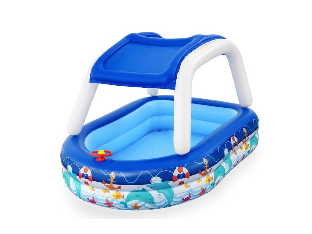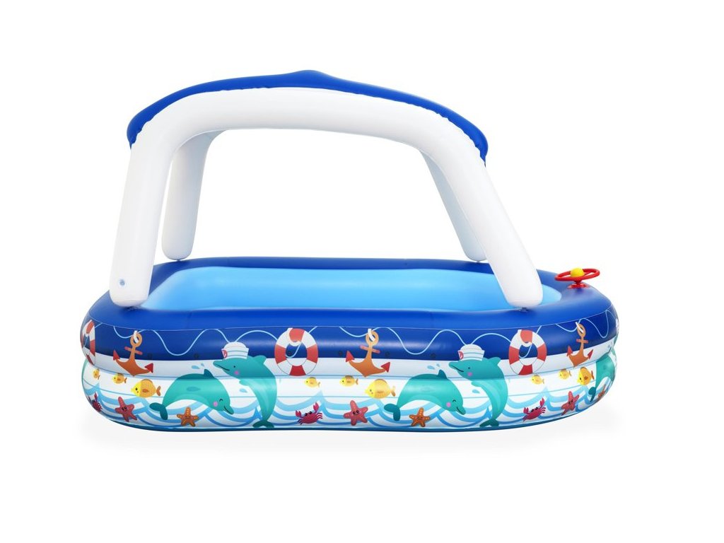 - Nafukovací bazén s baldachýnem 213 x 155 x 132 cm Bestway 54370 Velký, spolehlivý bazén pro celou rodinu, ve kterém si děti mohou volně plavat