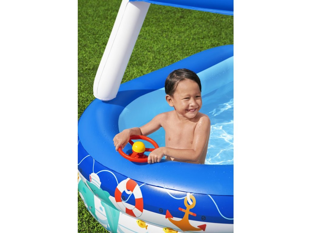 Nafukovací bazén s baldachýnem 213 x 155 x 132 cm Bestway 54370 Velký, spolehlivý bazén pro celou rodinu, ve kterém si děti mohou volně plavat.