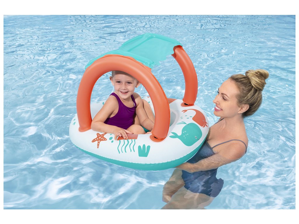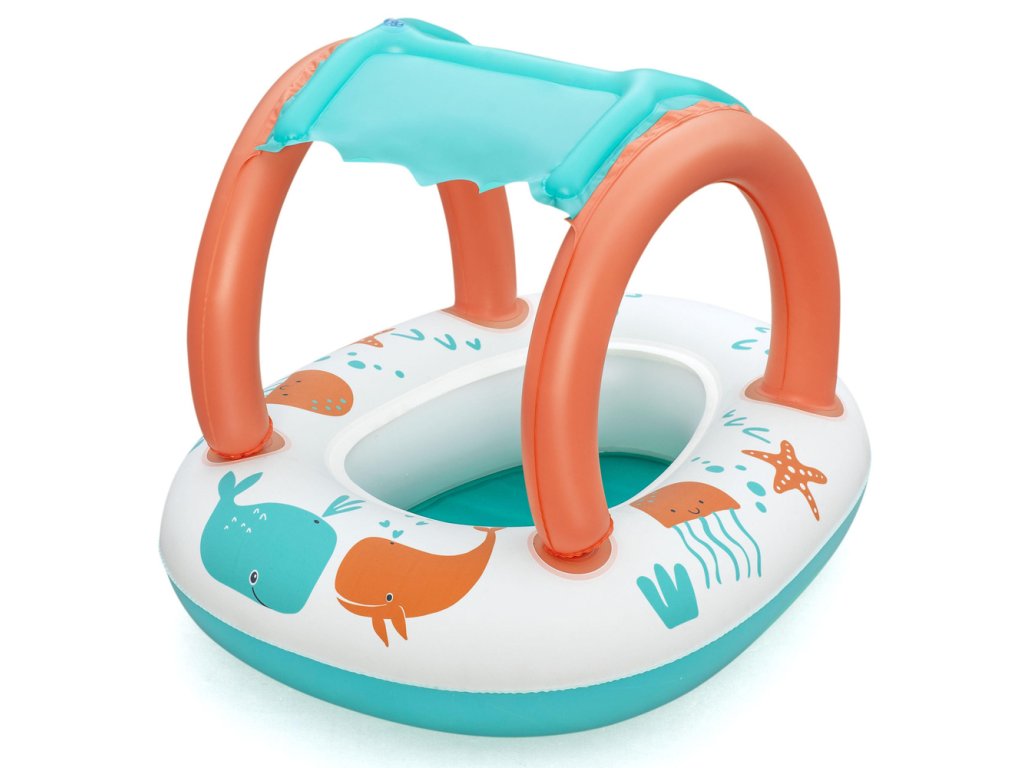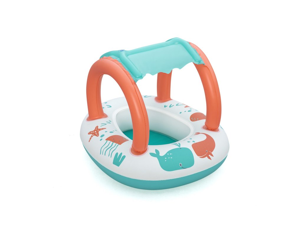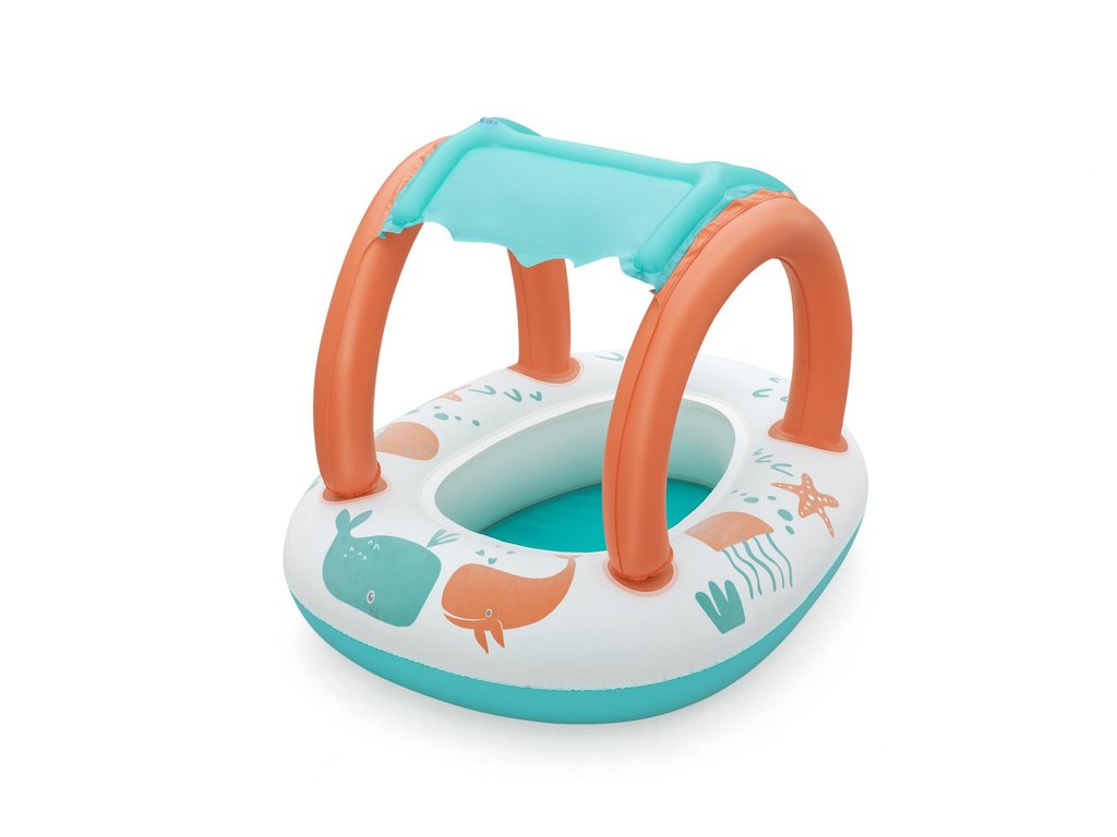 Nafukovací člun s odnímatelnou stříškou UV Careful™ o rozměrech 84 x 67 cm od značky Bestway je ideální vodní hračka navržená pro nejmenší děti, které teprve začínají svou dobrodružnou cestu s vodou.