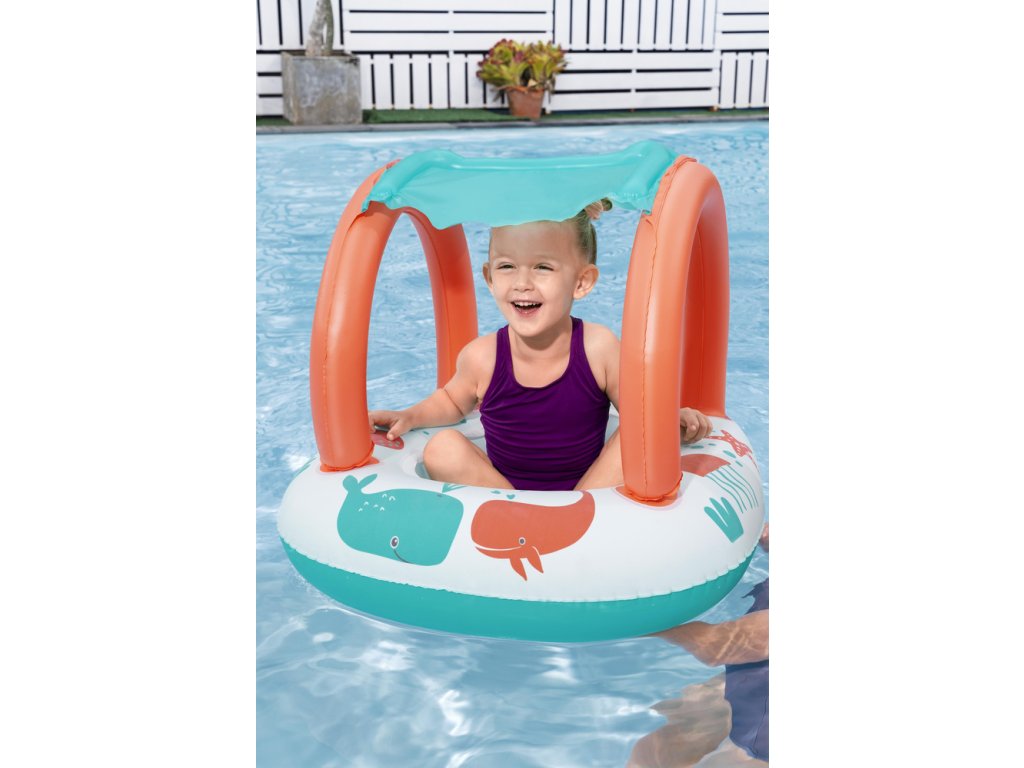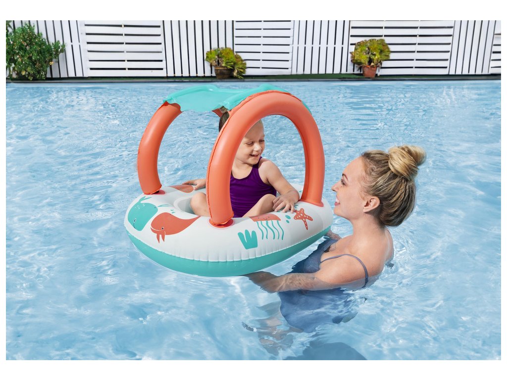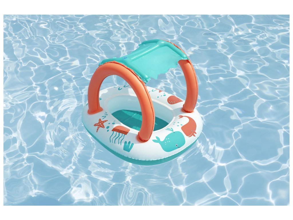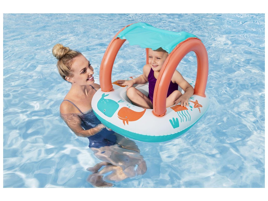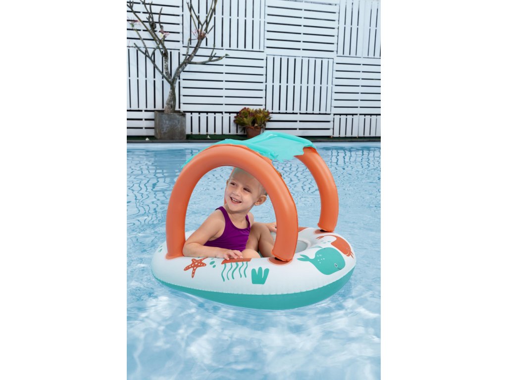Nafukovací člun s odnímatelnou stříškou UV Careful™ o rozměrech 84 x 67 cm od značky Bestway je ideální vodní hračka navržená pro nejmenší děti, které teprve začínají svou dobrodružnou cestu s vodou.