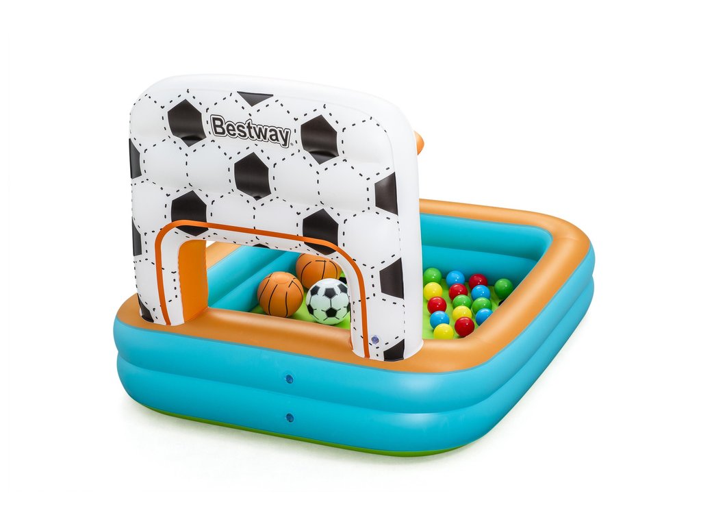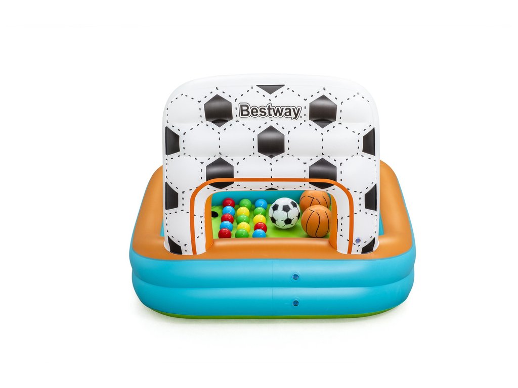 - Nafukovací hřiště s míčky 120 x 107 x 84 cm Bestway® Kick 'N Swish™ je multifunkční nafukovací bazén 3v1, který je ideální pro aktivní trávení času dětí