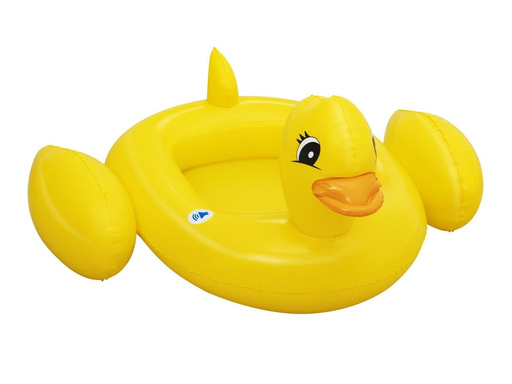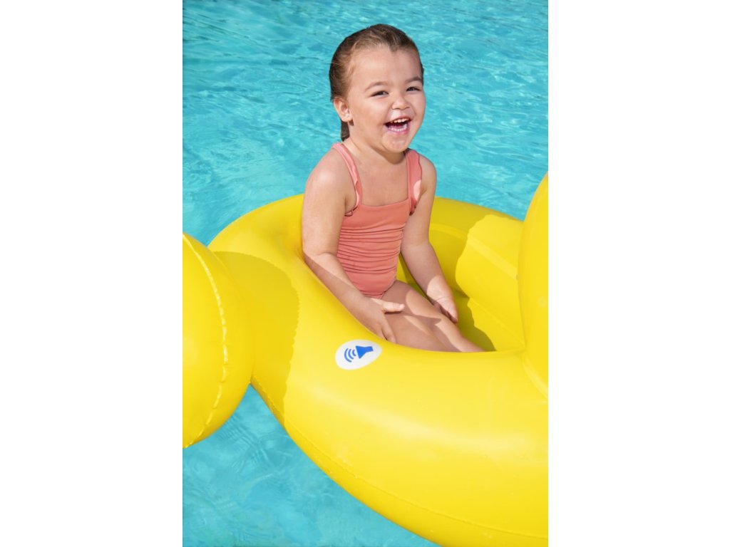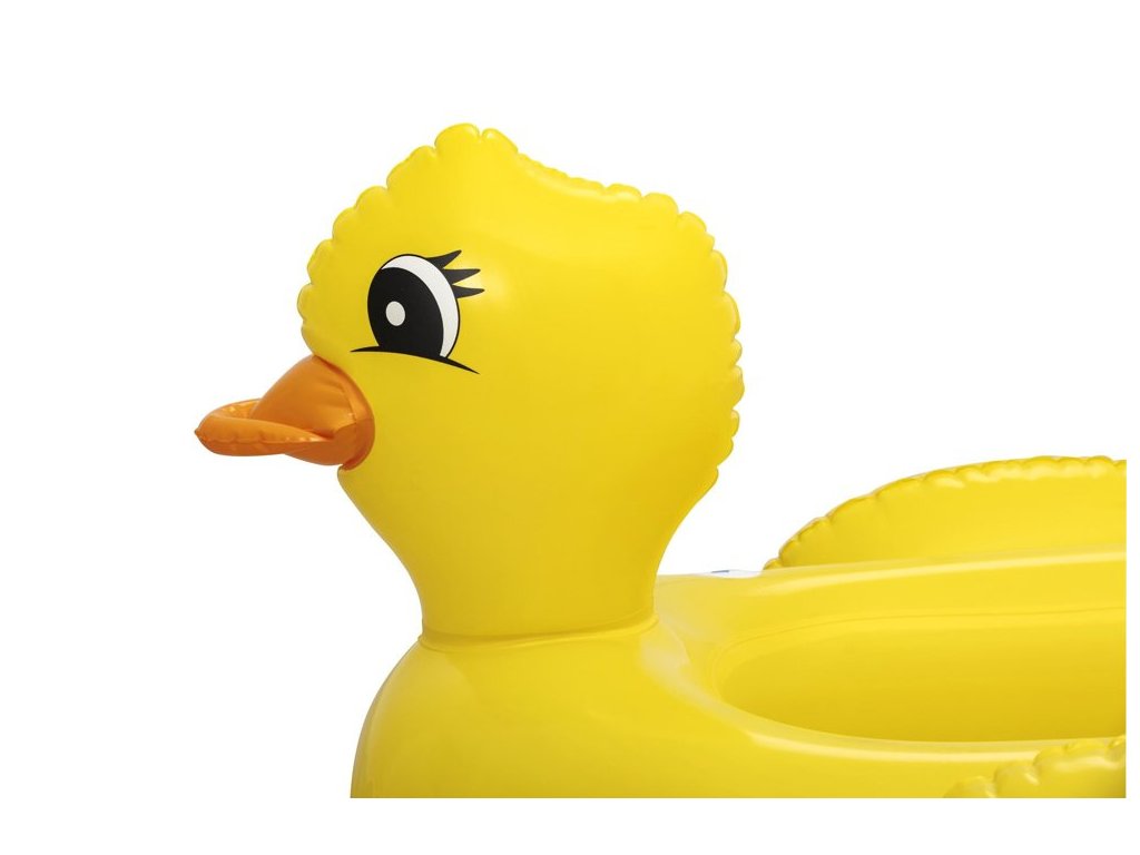 Kachna má široké sedadlo, které zajišťuje dítěti stabilitu a pohodlí při používání Tento nafukovací plavecký doplněk se osvědčí za všech podmínek, ať už u moře, na jezeře nebo v bazénu