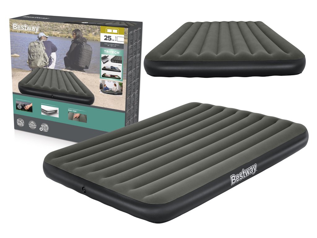 Nafukovací matrace Bestway 6713N o rozměrech 203 × 152 × 25 cm je ideálním řešením pro ty, kteří hledají pohodlné a trvanlivé místo ke spaní, ať už doma, nebo venku Díky technologii TriTech™ a konstrukci I-Beam matrace nabízí výjimečnou odolnost a pohodlí při používání