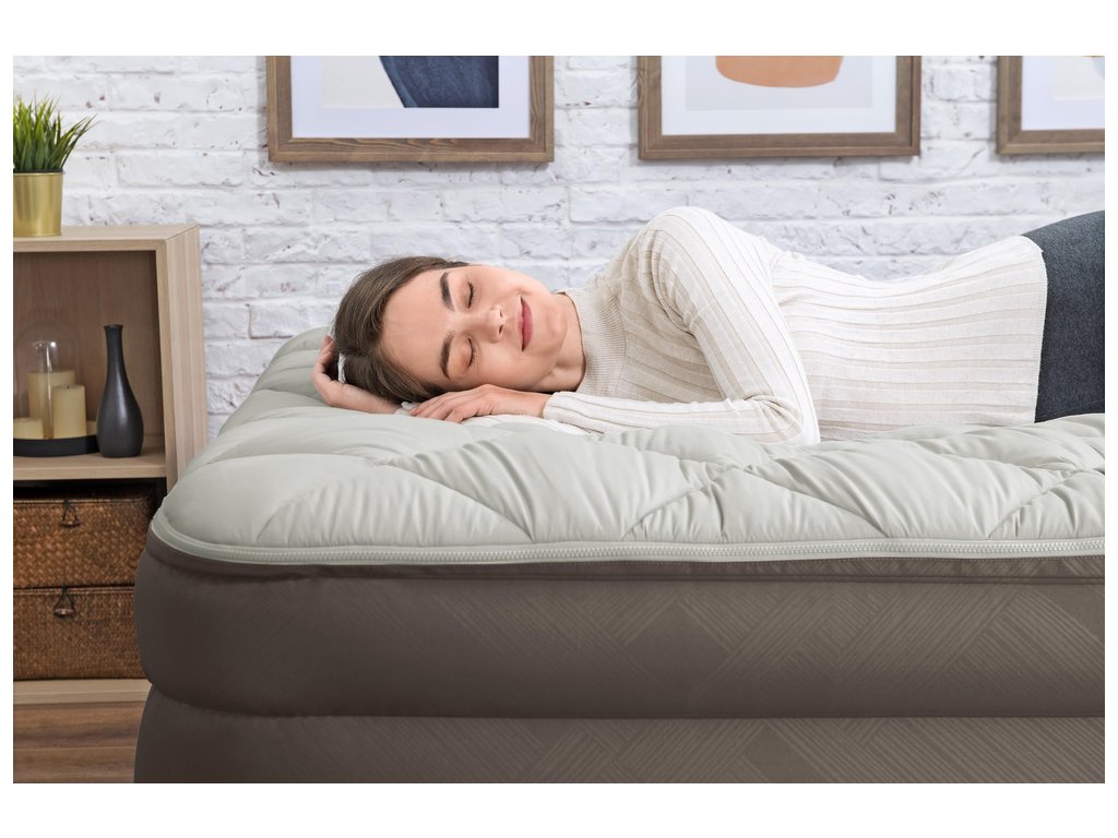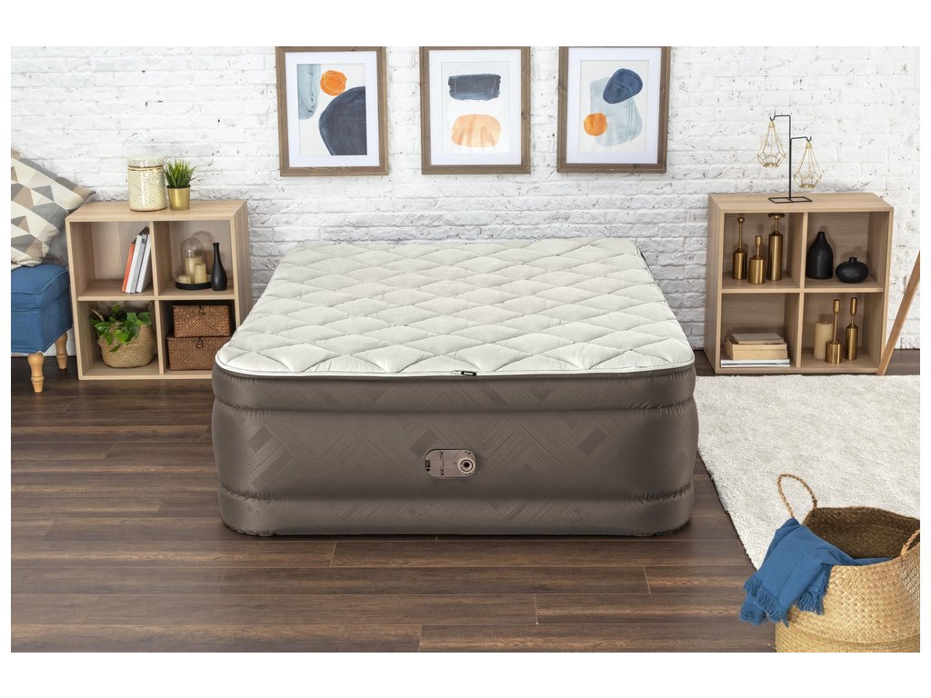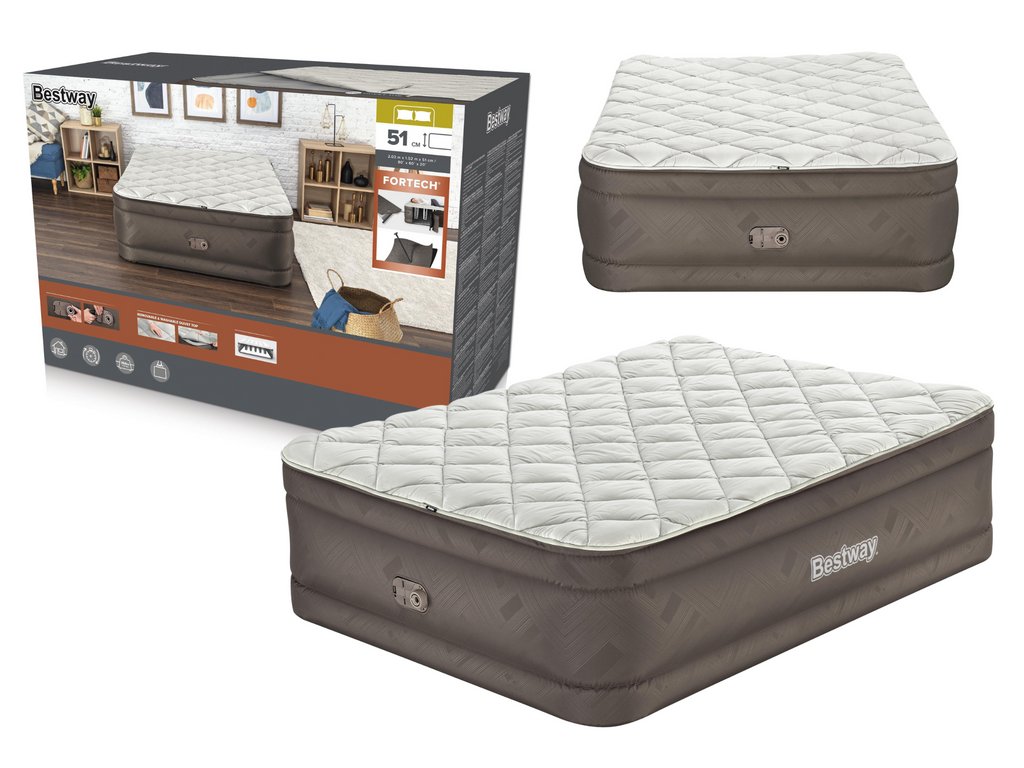 - Vestavěná elektrická pumpa umožňuje rychlé nafouknutí matrace za přibližně 5 minut, a taška pro uskladnění a přepravu zajišťuje jednoduché přenášení
