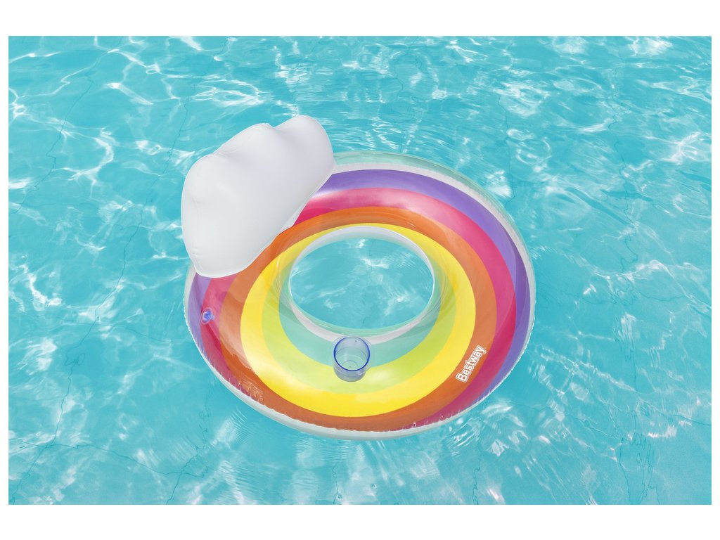 Nafukovací plavecký kruh 107 cm duhový Bestway 43647 Pokud se chystáte k vodě, nezapomeňte si vzít s sebou všechny nezbytné bazénové doplňky Skvělým doplňkem pro vodní relaxaci a zábavu bude také nafukovací plovací kruh