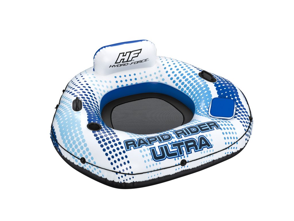 Kruh je navíc vybaven dvěma otvory na nápoje a pevnými držadly, které zajišťují stabilitu a pohodlné používání Je vyroben z odolného PVC materiálu, odolného proti poškození, a jeho síťované dno zajišťuje stabilitu a pohodlí při plavání