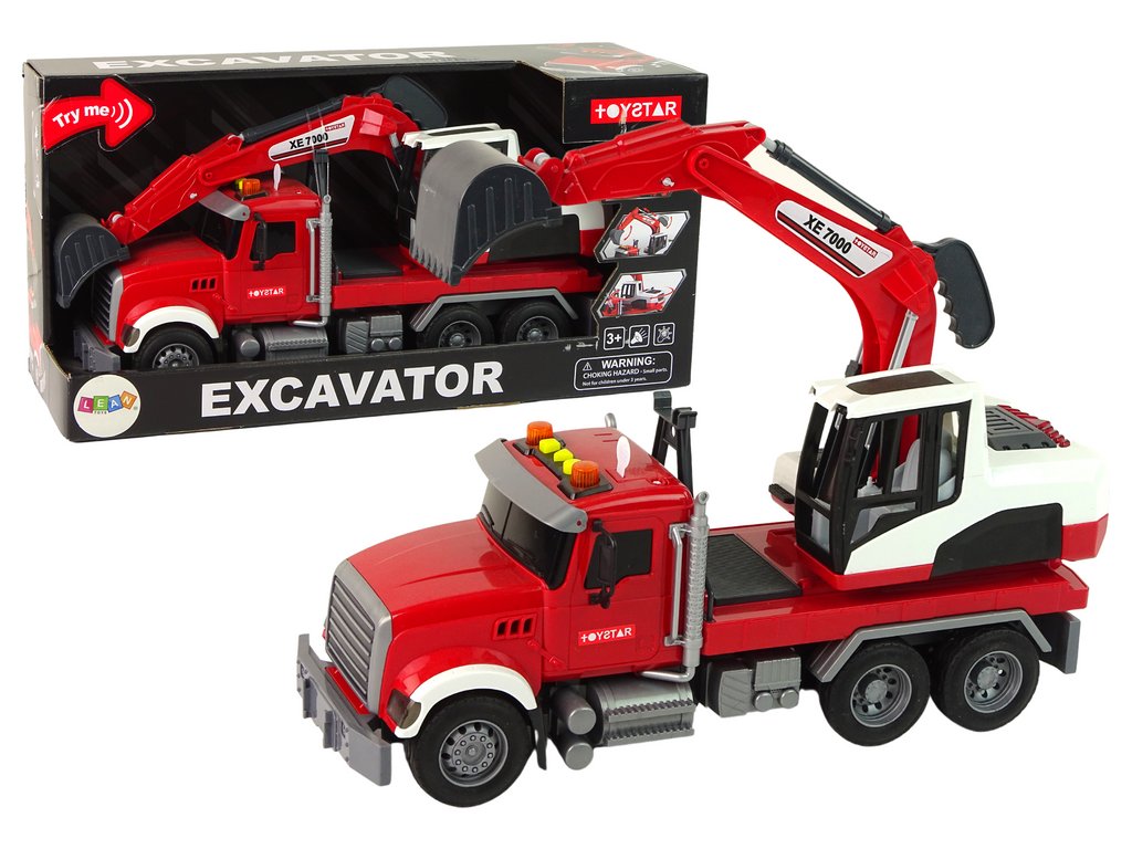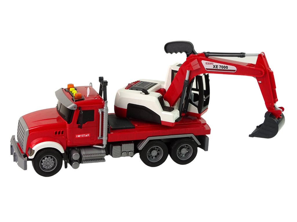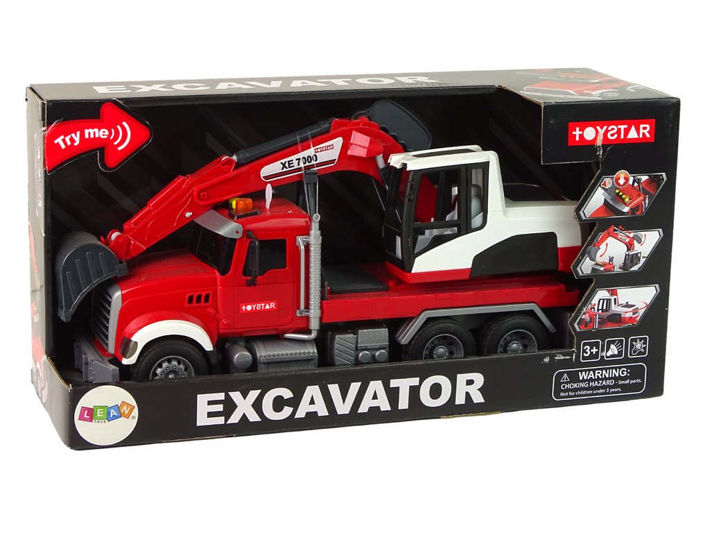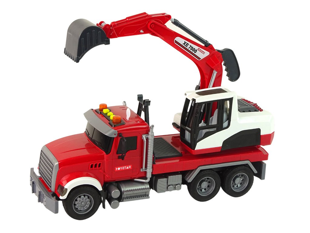 - Nákladní auto s bagrem Traktor Bagr Zvuk Světla Hlavním vozidlem je nákladní auto, které slouží jako tahač