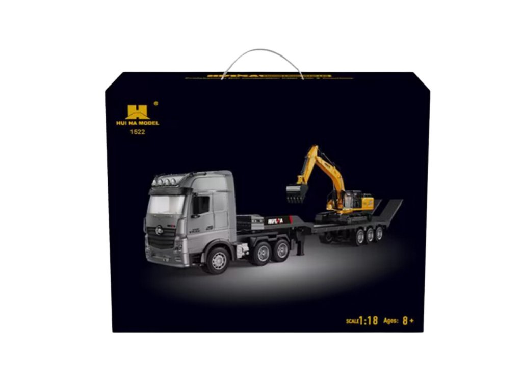 - RC Nákladní auto s návěsem a bagrem HUINA 1:18 je ideální model pro milovníky stavebních vozidel a realistických RC modelů