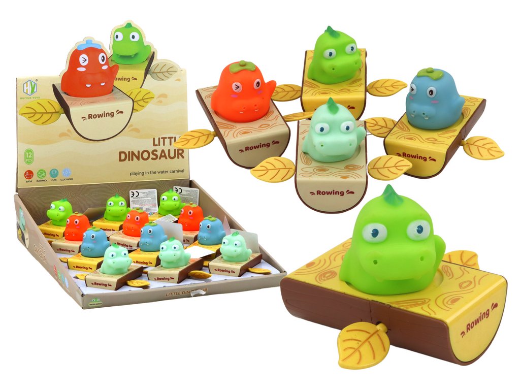 Koupací hračka – natahovací dinosaurus v loďce Koupací hračka – dinosaurus v lodičce je velmi kreativní hračka, která malým dětem přinese spoustu radosti při hraní ve vaně nebo bazénu.