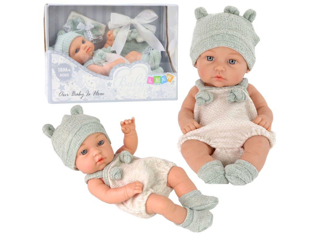 Tato loutka je oblečena do bílého body s šedými prvky, doplněného o měkkou čepičku s roztomilými ušky a ladícími ponožkami, což jí dodává nezaměnitelný šarm. Navíc, sada obsahuje kalhotky a bryndáček s bílou mašličkou, díky kterým si vaše dítě může vyzkoušet roli správného rodiče, přebalovat a pečovat o své miminko.
