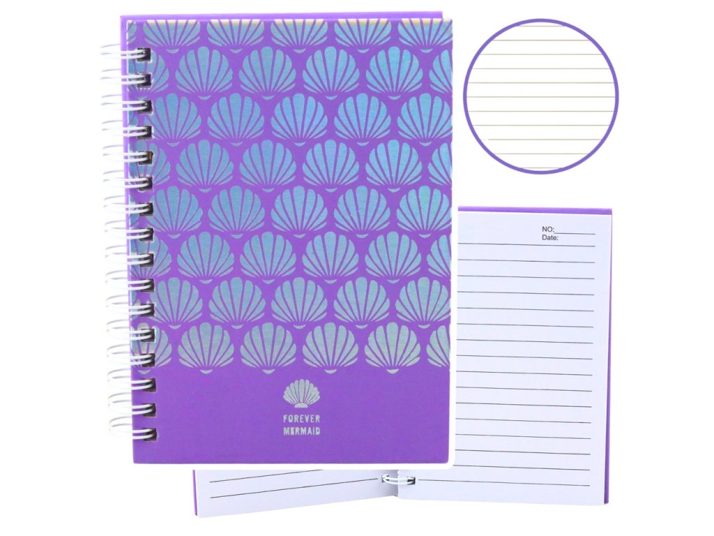 - Notýsek v liniích A6 holografický mušličky fialový 80 listů Moderní notýsek ve formátu A6 s efektní, holografickou obálkou zdobenou mušličkami je skvělou volbou pro každého, kdo si cení estetiky spojené s praktičností