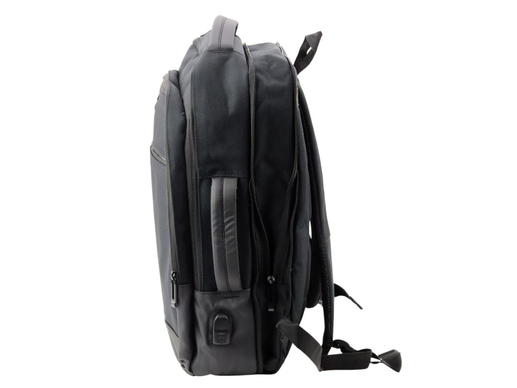 - Moderní obchodní batoh s USB a kapsou na notebook v černé barvě je ideálním řešením pro ty, kteří hledají pohodlí, pořádek a elegantní vzhled