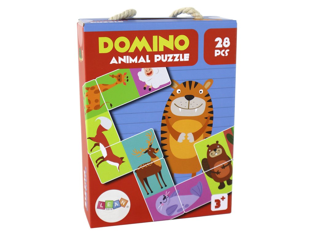 logickou hru Domino zvířata o rozměrech 10 cm x 5 cm, obsahující 28 dílků Je to skvělá hračka pro děti od 3 let, která rozvíjí představivost a koordinaci rukou a očí