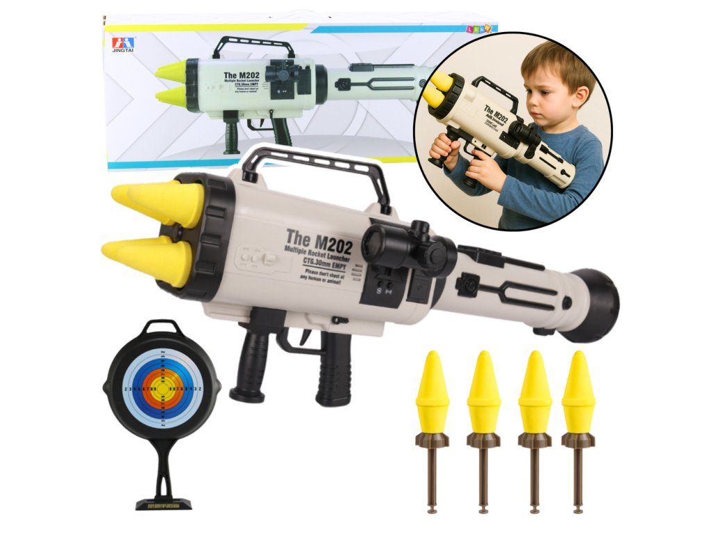 - Zažijte pocit skutečného dobrodružství s Obřím Raketometem M202, který přináší bezpečnou a vzrušující zábavu pro vaše děti!
